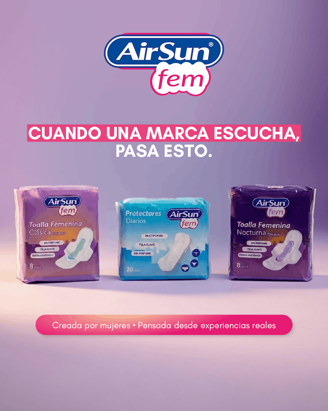 A partir de experiencias reales, AIRSUN FEM desarrolló una línea de higiene femenina creada por mujeres, con productos pensados para distintos momentos y necesidades.